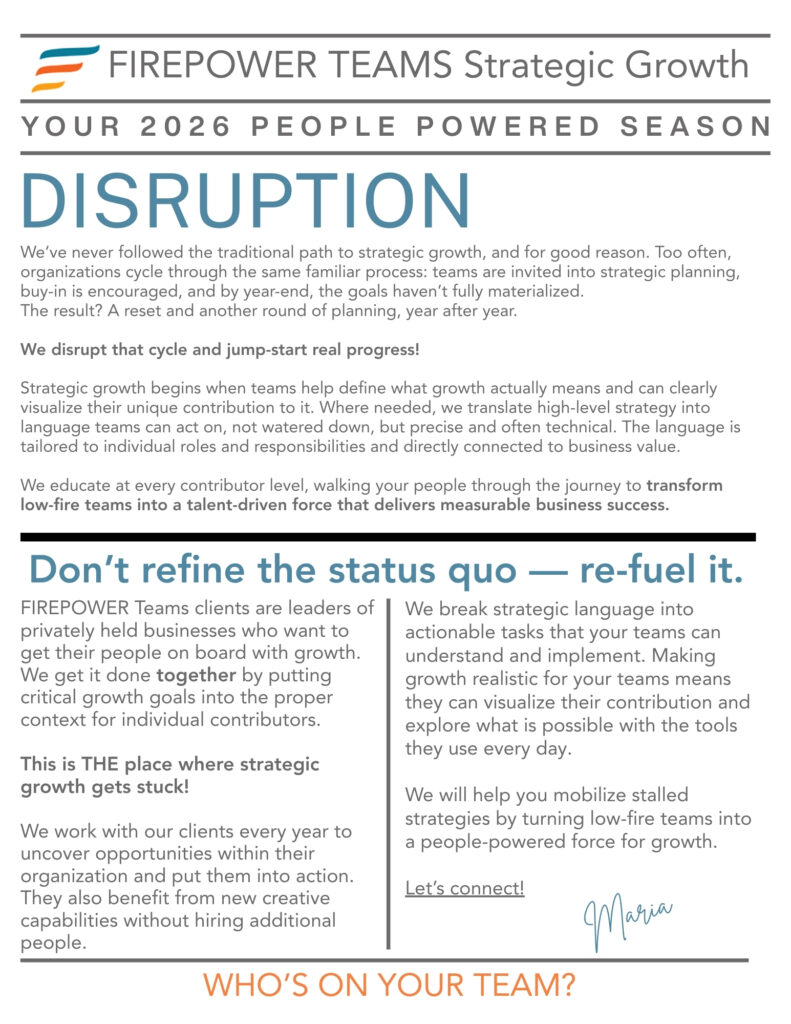 FIREPOWER Teams’ Strategic Growth Approach empowers small business teams to contribute effectively to your organizational goals.